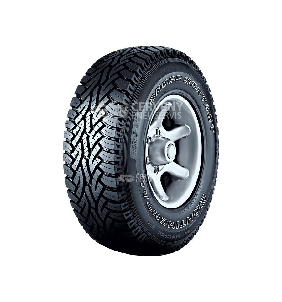 Pneumatika ContiCrossContact AT je všestranná terénní pneumatika pro automobily s pohonem všech čtyř kol. Bez problémů zvládne jízdu po nezpevněných cestách i v horských podmínkách a překvapí Vás komfortní a relativně tichou jízdou na dálnici. Otevřená ramenní oblast spolu s širokou kontaktní plochou a agresivním dezénem zaručuje vynikající záběr, dobrý odvod vody a výborné samočistící vlastnosti. Přesazení dezénových bloků ve střední části dezénu snižuje hluk odvalující se pneumatiky a přispívá k tiché jízdě.